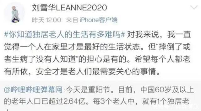 两人因戏结缘,又因为“大闸蟹”定情。 婚后两人恩爱甜蜜,但不幸的是,2011年,邓育昆传出坠楼身亡消息。 丈夫离世的消息,打的刘雪华措手不及,就此刘雪华开始了自己漫长的独居生活。 除了进组拍戏,就是一个人呆在家,几乎不出门。 刘雪华的担忧和陈光前的遭遇,展现了独居生活的另一面。 但值得一提的是,我国现在的独居老人不在少数。 根据第七次人口普查的数据显示,我国独居和空巢老人已超过1.18亿。 这意味着,我国每四位老人中就有一人是独居或者空巢老人。 就此,我们更应该关注身边的独居老人,尽一份自己的绵薄之力。